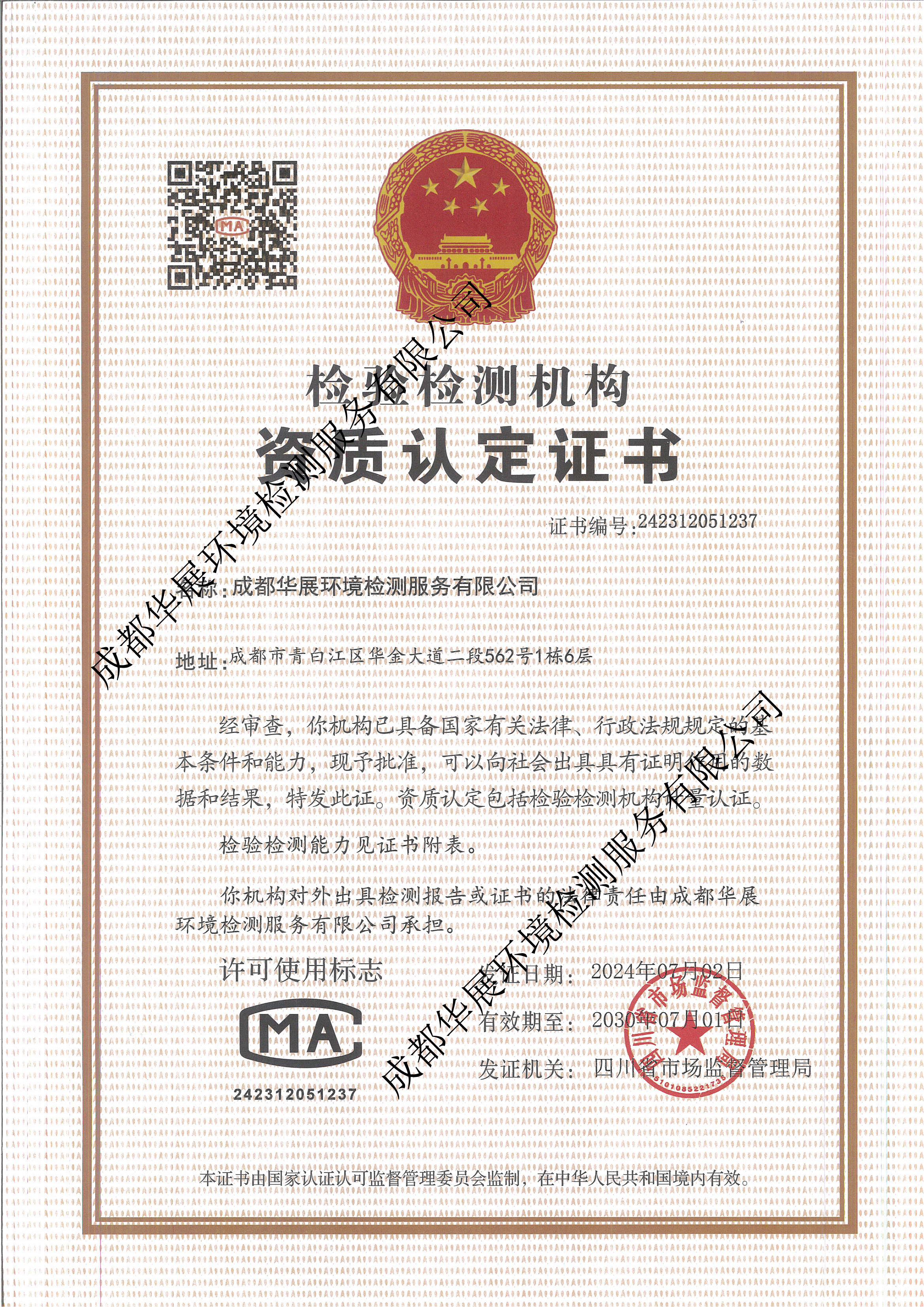 本公司對以下承諾內容的真實性、全面性、準確性負責。本公司承諾: 1、嚴格遵守《檢驗檢測機構資質認定管理辦法》(總局令163號)修正案、《檢驗檢測機構監督管理辦法》(總局令39號)、《檢驗檢測機構資質認定評審準則》、《中華人民共和國計量法》、其他相關法律法規等的要求; 2、獨立公正從業、履行社會責任、恪守職業道德、嚴守誠實信用原則; 3、嚴格按照有關管理規定正確使用證書和標志; 4、在資質認定授權范圍內獨立開展檢測工作,檢測工作的質量不受任何關系、部門和利益相關方的不正當干擾; 5、保證檢測數據結果公正準確、可追溯。